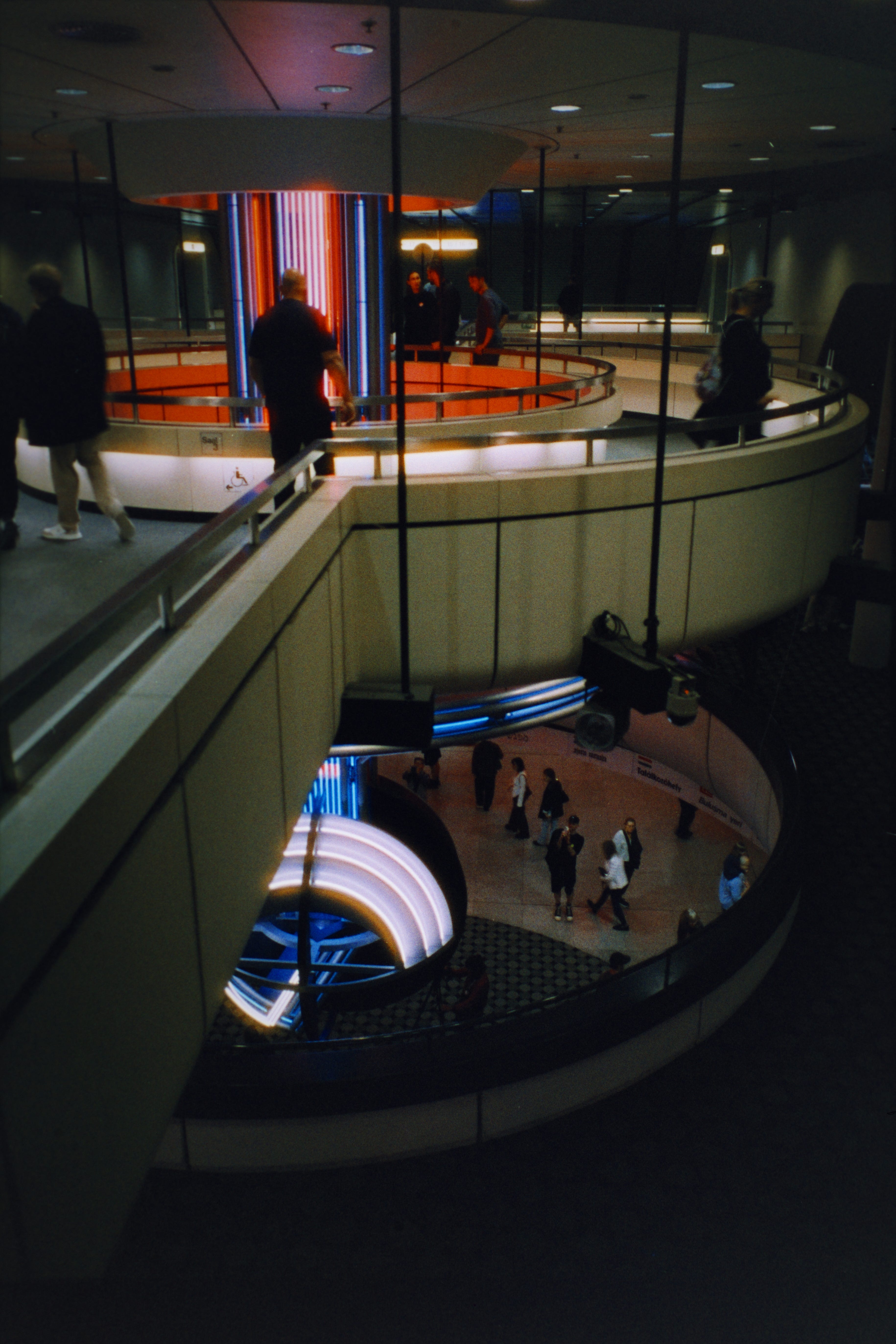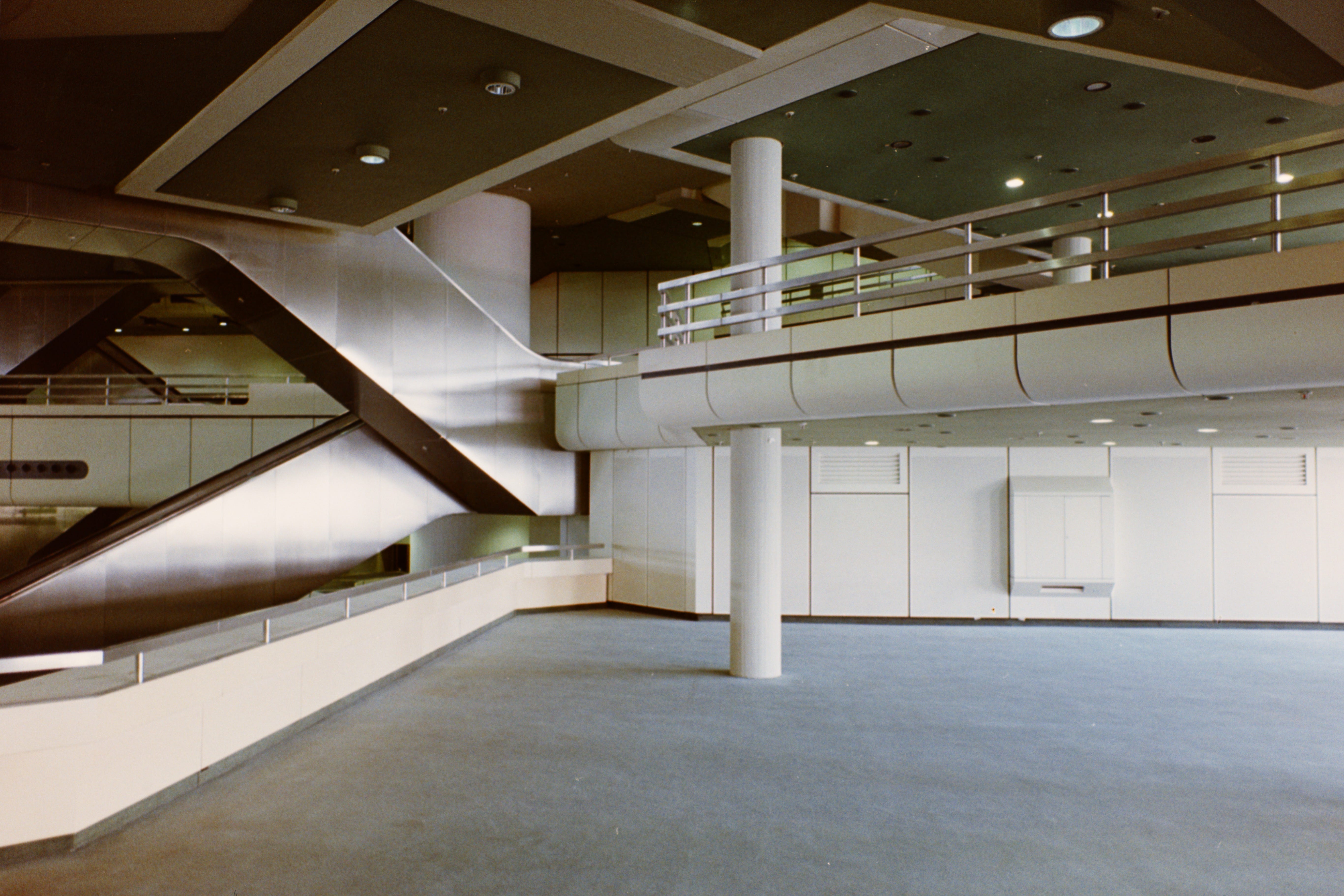 The ICC’s architectural style can best be described as high-tech modernism with a touch of brutalism. It shares similarities with the Centre Pompidou in Paris in its inside-out, machine-like aesthetic, as well as the multi-purpose concrete ethos of the Barbican Centre in London. Its scale is overwhelming; you could walk for hours and never see it all. The fact that it remains essentially unchanged from its inception in 1979 gives it an eerie quality, as if it were haunted by the ghosts of another era that never existed, as if history had spun off into a parallel timeline. Walking around and getting a sense for this building brought feelings of past optimism and present melancholy. Was it progressive or dystopian? I haven’t fully decided. But even the slightly more modern touches, such as the 2000s signage denoting “Wi-Fi hotspots,” feel grounded in a time where most of us were convinced that an increasingly connected world was a liberating and united rather than dividing and shackling force.